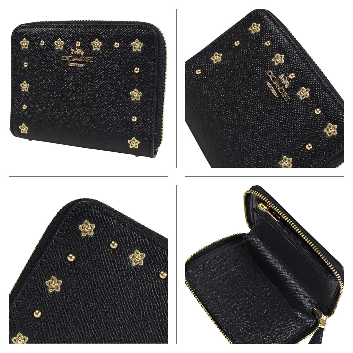商品説明 商品名 FLORAL RIVETS ROUND WALLET 型番 F39125-IMBLK カラー ブラック:BLACK 素材 PVC レザー 金具 ゴールド 生産国 CHINA 仕様 開閉:ファスナー式開閉 内側:お札入れ×2、ファスナー小銭入れ×1、カードポケット×12、ポケット×2 外側:- サイズ 幅×高さ×マチ(cm) 11.5×9×2 ご購入前に必ずお読みください サイズについて 平置きして採寸したサイズになります。